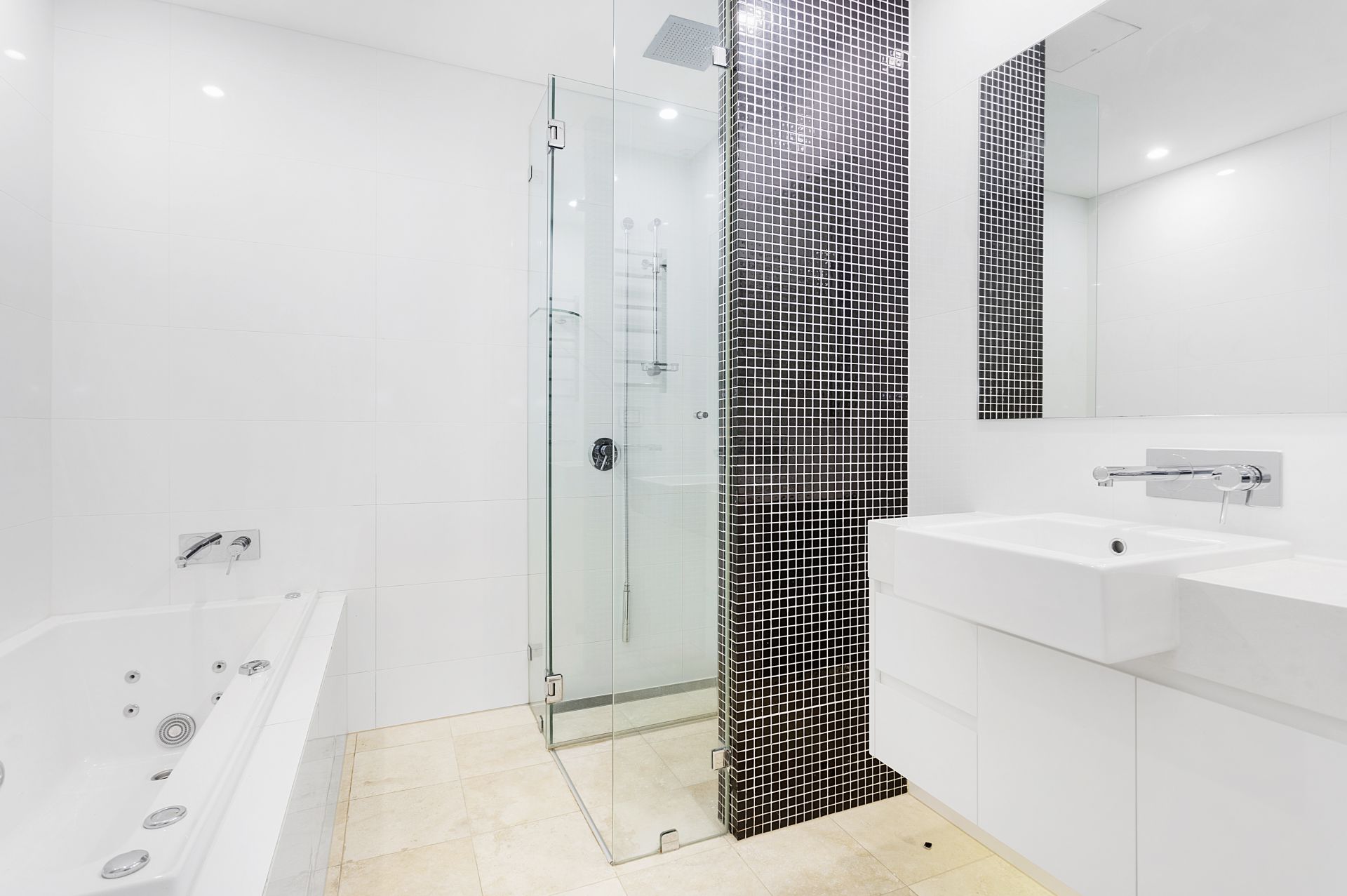 + Luxurious bathrooms, including a fully-tiled main with spa bath, twin vanities, and underfloor heating.